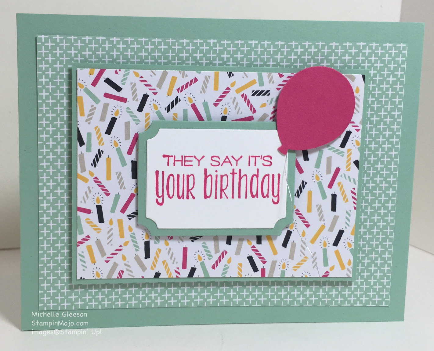 #imbringingbirthdaysback, StampinMojo, It's My Party DSP, Suite Sayings